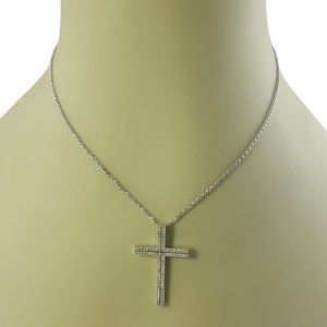 This sparkling cross pendant features 78 round single cut diamonds set in classic 14K white gold. Suspends from a 14K white gold necklace.