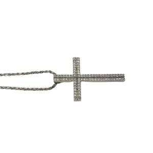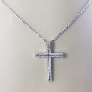 Vintage 14 Karat White Gold Diamond Cross Pendant Necklace #10491