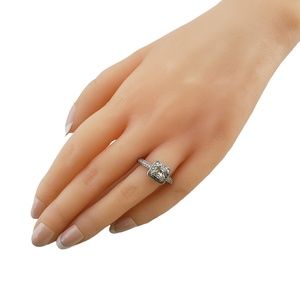 Vintage 14 Karat White Gold Princess Cut Diamond Halo Engagement Ring Size 4.25 JAGi Certified-