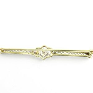 Vintage 14 Karat White and Yellow Gold and Diamond Bar Pin-