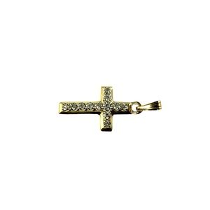 This sparkling cross pendant features 12 round brilliant cut diamonds set in classic 14K yellow gold.