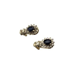 Vintage 14 Karat Yellow Gold Natural Sapphire and Diamond Earrings #13238