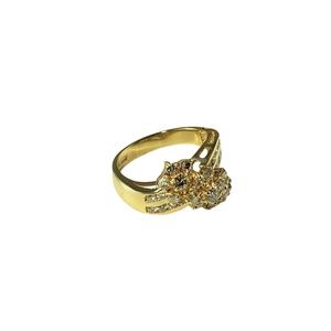 This sparkling ring features 29 round brilliant cut diamonds set in beautifully detailed 14K yellow gold. Width: 17 mm. Shank: 3 mm.