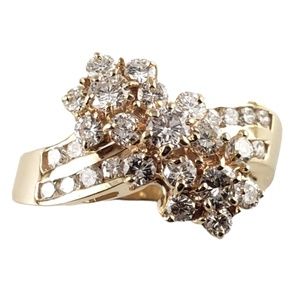 Vintage 14 Karat Yellow Gold Diamond Cluster Ring Size 8.5-
