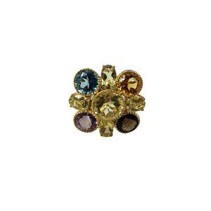 This stunning ring features topaz, amethyst, smokey quartz and citrine gemstones set in beautifully detailed 14K yellow gold.