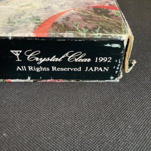 Vintage 1992 Crystal Clear Studios round 14" glass Hand Painted Platter. Outdoor Christmas tree scene on farm; Red barn with gold accents