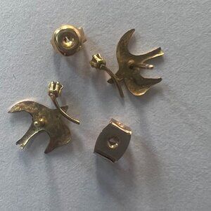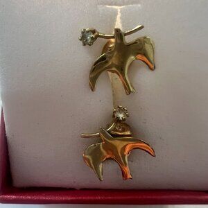 Vintage 14K Gold Bird Earrings w/ Diamond / czAccent 585 Marked Studs back Read!