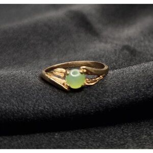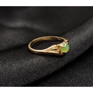 Vintage 14K Solid Gold Ring With Jade Gemstone Size 7 Elegant Delicate Jewelry