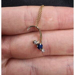 Vintage 14K Solid Gold Topaz & Cubic Zirconia Crescent Pendant Necklace