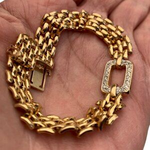 Vintage 14K Solid Gold and Pavé Diamond Panther Link Bracelet 19G