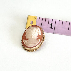 Vintage 14K Solid Yellow Gold Carved Shell Left Facing Cameo Brooch Pin Pendant