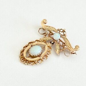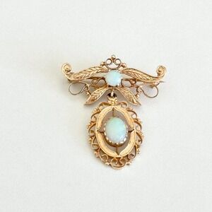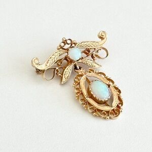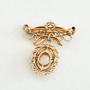 Vintage 14K Solid Yellow Gold Fire Opal Filigree Detailed Drop Brooch Pin
