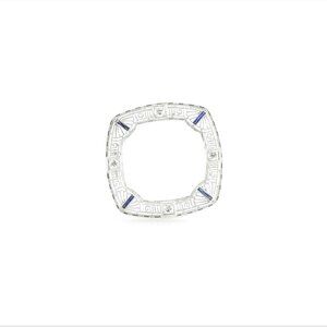 Vintage 14K White Gold Filigree, Diamond & Synthetic Sapphire Brooch/Pin #6555