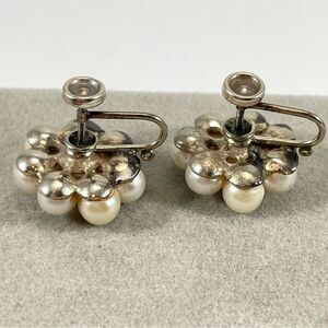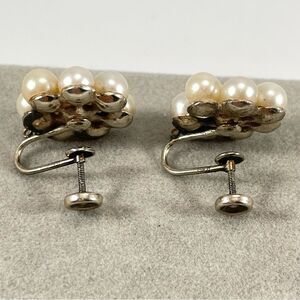 Vintage 14K White Gold Pearl Cluster Screw Back Earrings Elegant Bridal Classic