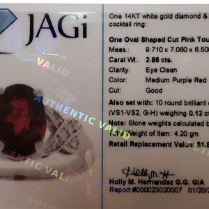 Vintage 14 Karat White Gold Pink Tourmaline and Diamond Ring Size 6.5-6.75 JAGi Certified-
