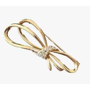 This vintage yellow gold ribbon bow pin brooch is a stunning piece of jewelry that will add elegance to any outfit. The ribbon bow shape is beautifully crafted and features smaller diamonds along the ribbon. The total carat weight is approximately .25 carat, and the diamond clarity grade is slightly inclusion .