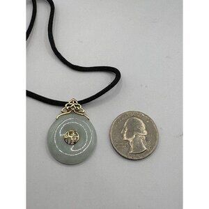 Vintage 14K Yellow Gold Green Jade Jadeite Pendant Necklace Black Silk Cord