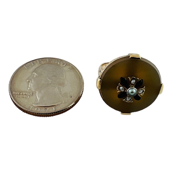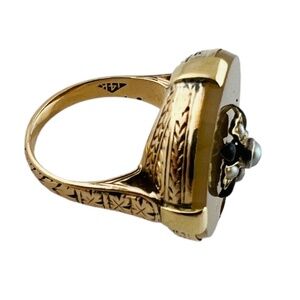Vintage 14K Yellow Gold Round Black Onyx Seed Pearl Ring #16001