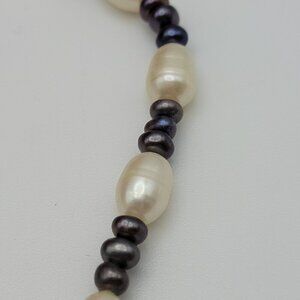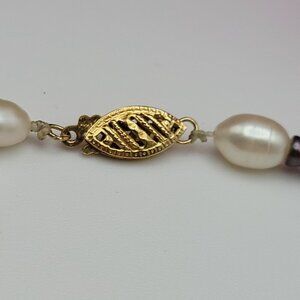 Vintage 14K Yellow Gold White And Purple Pearl Beaded Necklace 16" Box Clasp