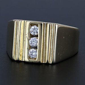Vintage 14K Yellow Gold and Diamond Men's Art Deco Cocktail Anniversary Ring