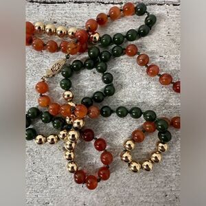 Vintage 14k Gold Balls With Hand Knotted Jade Beads Necklace