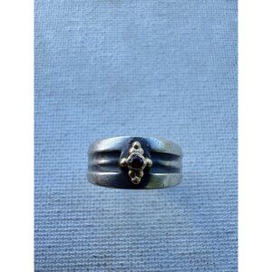 band is solid sterling silver with a ruby set in 14k yellow gold