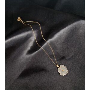 This graceful necklace features a genuine 14k solid gold chain, glimmering with timeless luxury. At its heart, a soft, frosted flower pendant unfurls—delicate and dreamlike, as if plucked from a moonlit garden.