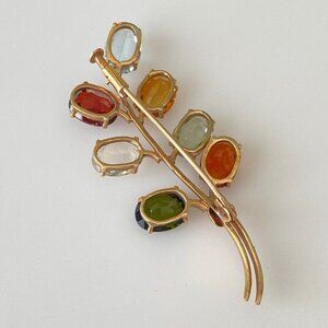 Vintage 14k Solid Yellow Gold Multi-Gemstone Floral Plant Brooch Pin