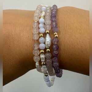 14k Gold Pearl Rose Quartz Bead Ball Bracelet 7"