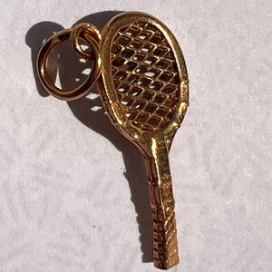 Vintage 14kt Two Tone Yellow Gold Diamond Tennis Racket Charm Pendant