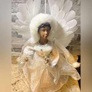 Vintage 16” Dark Skin Angel In White Tree Topper/ Figurine ( See Description)‎