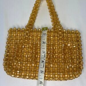 Vintage 1690's Handmade Acrylic Crystal Beaded Handle Bag Evening Bag Yellow