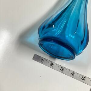 Vintage 17 Inch Long Stretch Art Glass Swung Vase Blue Bud Vase MCM