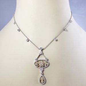 Vintage 18 Karat Two Tone Gold and Diamond Pendant Necklace #13561