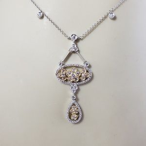 Vintage 18 Karat Two Tone Gold and Diamond Pendant Necklace-