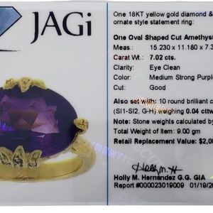 Vintage 18 Karat Yellow Gold Amethyst and Diamond Ring Size 7 JAGi Cert. #13751