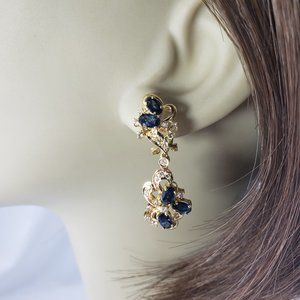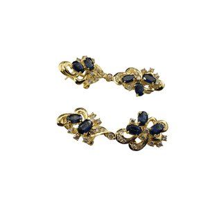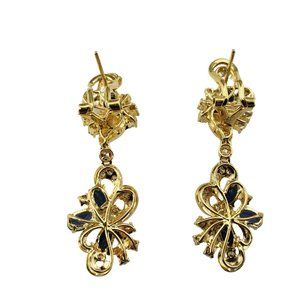 Vintage 18 Karat Yellow Gold Natural Sapphire and Diamond Dangle Earrings #10739