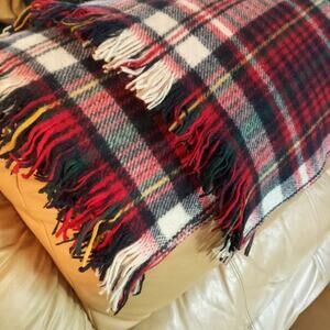 RARE FIND! Chippewa Woolen Mills, Vintage Wool Plaid Stadium Blanket with Fringe from Chippewa Falls Wisconsin, USA. A gorgeous piece of American History ... the famous mill was open from 1882 - 1962, employing many townspeople. The blanket dates sometime in this period, but I cannot be sure of the exact date of manufacture. The throw is in excellent condition. Perfect for a snuggle up on the sofa night, or lodge, cottage chic or any BOHO decor. Measurements: 52" x 70".