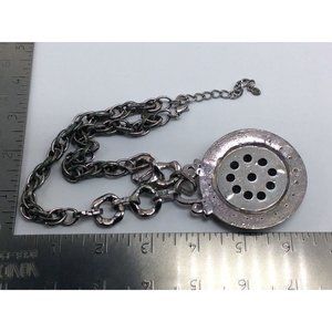 Vintage 18"-20" Necklace Silver Toned Chain With Round Black Animal Print Design