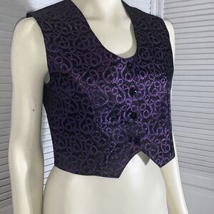 Vintage 1849 Authentic Ranchwear Button Front Vest Small Rodeo Purple Jacquard Shimmer