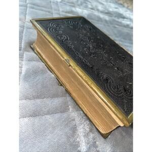 The product is a vintage 1850 edition of "The Book of Common Prayer - The Sacraments" bound in black leather. This collectible item holds religious significance within Christianity as it contains prayers and rituals associated with the sacraments. The leather binding adds a touch of elegance and durability, making it a valuable piece for collectors or those looking to add a historical religious text to their personal library.