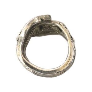This vintage 1881 Rogers A1 sterling silver ring is a unique piece of jewelry that can be worn as a statement or cocktail ring. The ring features an adjustable size. Band width of 5.9mm and is signed by the brand. The ring is made of silver and has a beautiful flower pattern that adds to its elegance.