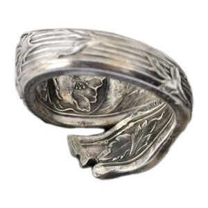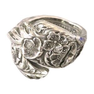 Vintage 1881 Rogers A1 Sterling Silver large Flower Spoon Ring Adjustable Sz:7.5