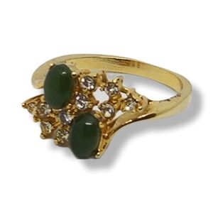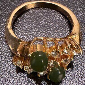 Vintage 18K Electroplated Ring • Genuine Jade & Austrian Crystals • Cocktail Sty