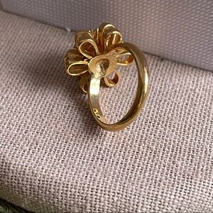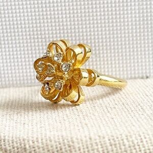 18K gold electroplated yellow gold flower design ring with clear rhinestones