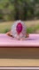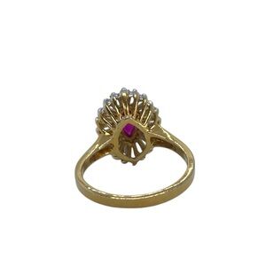 Vintage 18K GE Marquise Baguette Halo Ring Vivid Pink & Clear Stones Size 9