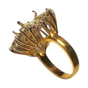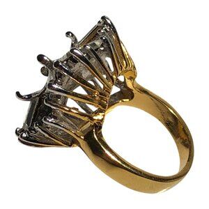 Vintage 18K Gold Plated Two Tone Statement Cluster Ring – CZ Stones, 5g - Size 5