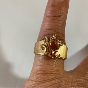 Vintage 18K HGE Flower Ring w/ Tigers Eye Stone & Crystals Sz 6.5 Gorgeous chakra healing