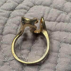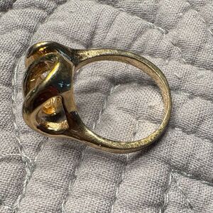 Vintage (80's) swirl statement ring with a sculptural modernist design and gold finish. Marked: 18K HGE (Heavy Gold Electroplate) Gold-plated over base metal. Vintage piece. Size 7. Sculptural abstract swirl/wave design. Please note: This ring is gold plated, not solid gold. Photos show condition and markings clearly.