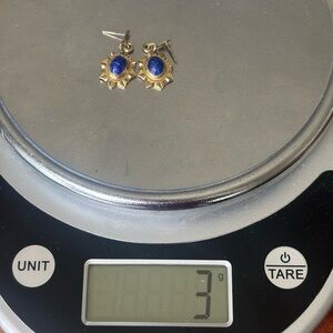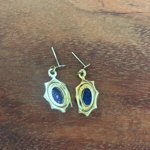 Vintage 18k GE Faux Blue Lapis Lazuli Dangle Earrings – Egyptian Revival Style